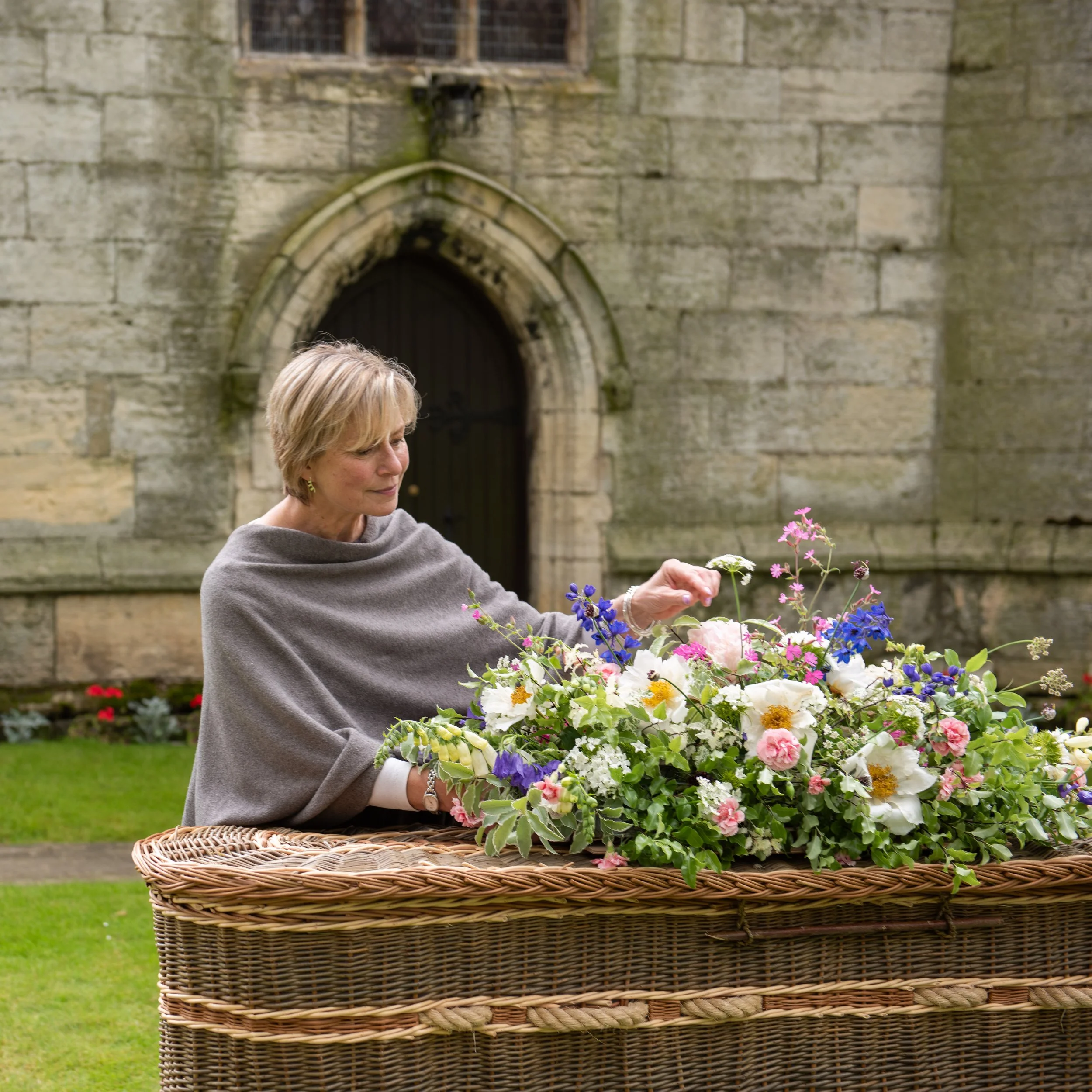 While raising my family, I always made space for growing flowers. In 2013, I became a member of Flowers from the Farm and started Fenwick Flowers, named after my maiden name, I specialised in wedding flowers. In 2024, I joined Farewell Flowers and shifted my focus to creating beautiful, fully compostable funeral arrangements with no floral foam or harmful materials. Every tribute is designed with sustainability in mind, using locally grown flowers when in season and my own foliage mixed with imported flowers during the winter months.